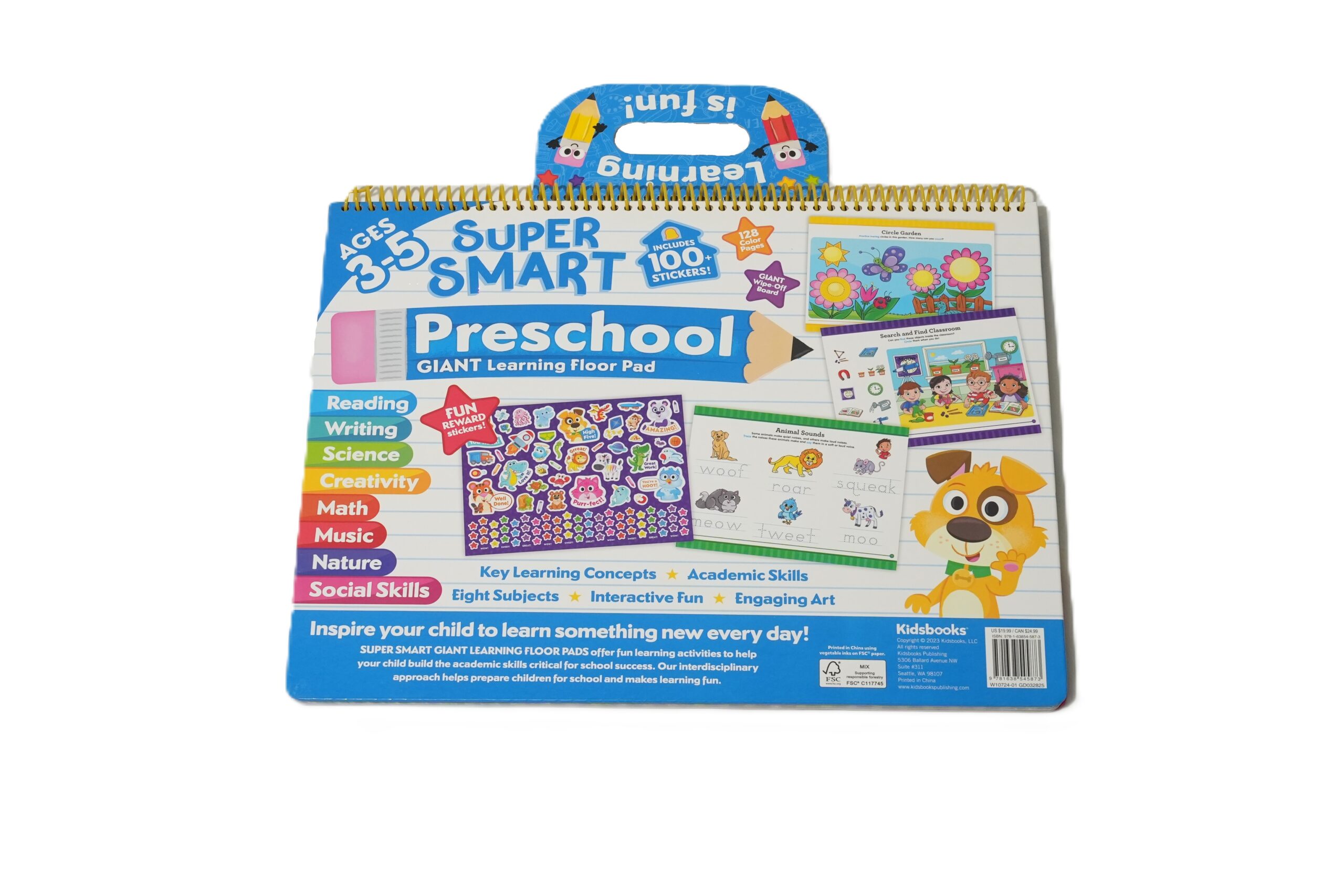 This floor pad contains engaging activities and is filled with big, bold illustrations for children to color and write. Perforated pages and a child-friendly handle make this perfect for an after-school activity or summer break entertainment.