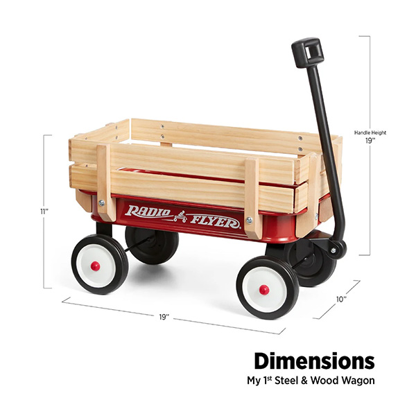 My 1st Steel & Wood Wagon is a beautifully designed classic wagon made especially for toddlers. Crafted with a sturdy steel body and real wood side panels, this wagon offers a timeless look along with safe, durable construction.