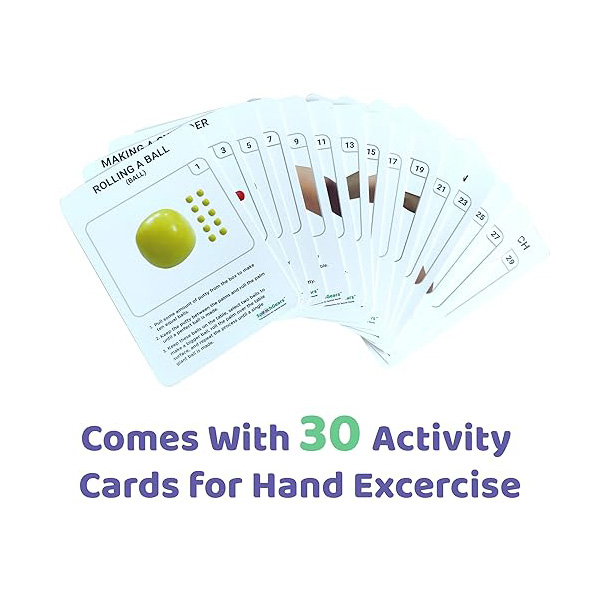 Therapy Putty is hand exercise material to strengthen hand muscles, improve fine motor skills, and decrease stress. Use to practice flexion, extension, press, pinch, and adduction exercises. Children can use it to develop fine motor skills or use it for playtime. Fine motor skills are crucial for daily tasks, like fastening a button. With Therapy Putty, fine motor skills can be improved by strengthening finger muscles and simulating common daily movements. It is made of premium materials that will not dry out over time. Each colour may be used independently or as a progressive resistance exercise program.